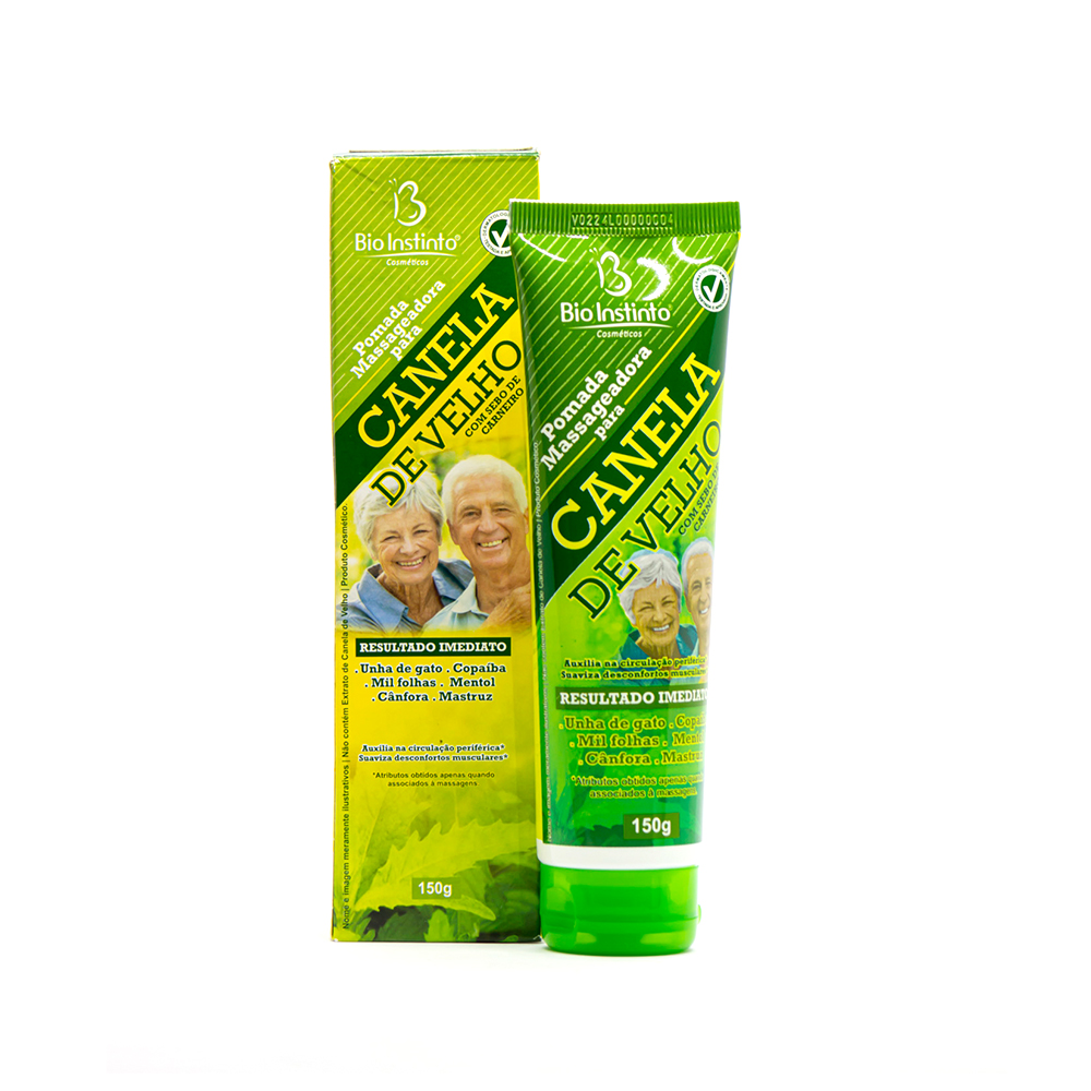 A Pomada Canela de Velho BioInstinto possui fórmula nova, 0% parabenos e 0% petrolatum. Indicada para ação desodorante, auxilia no alívio dos sintomas de rigidez ou fadiga muscular.
